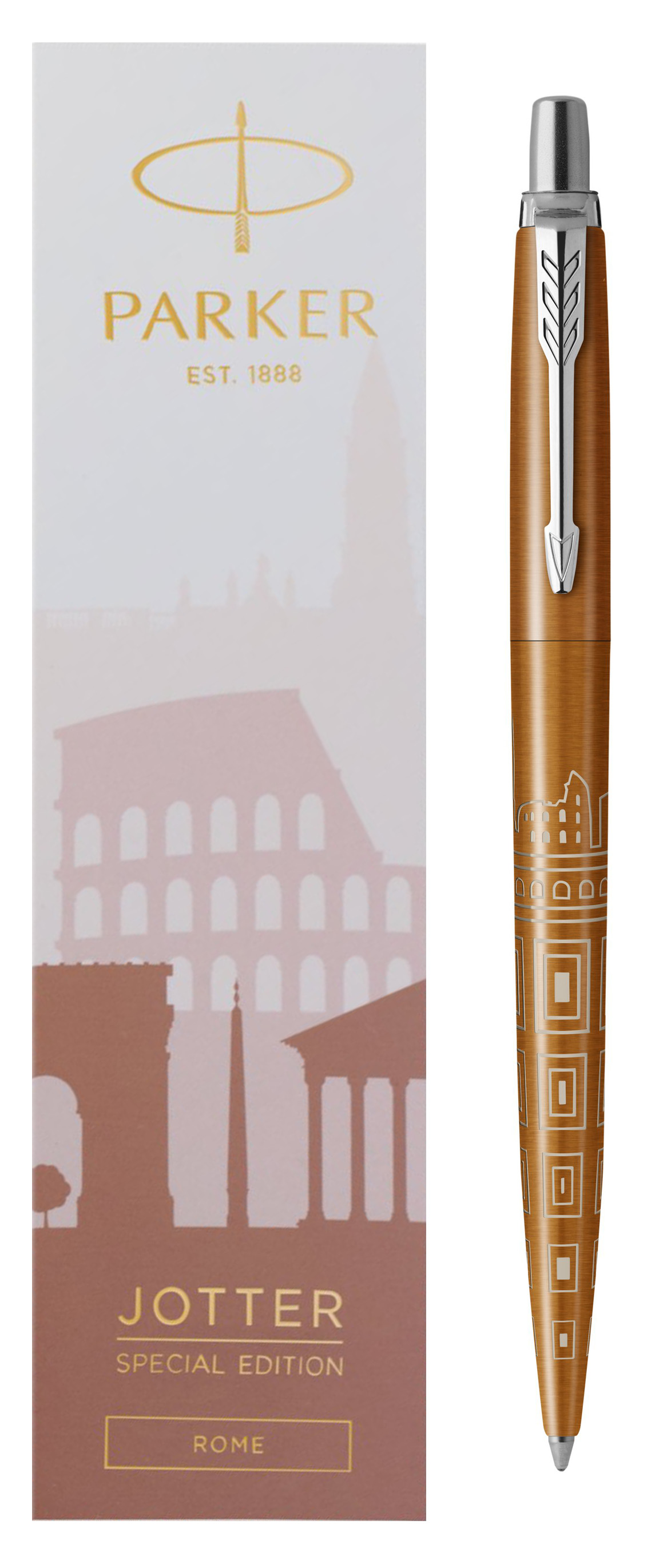 Ручка шариковая Parker Jotter Rome Bronze CT от официального дилера Parker в Елеце. Вы можете дополнительно заказать гравировку, которая подчеркнет Вашу оригинальность и придаст памятность статусному подарку. Все ручки Паркер поставляются в фирменном футляре.