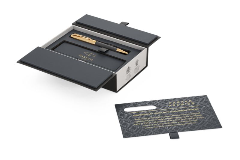 Шариковая ручка Parker Premier Storm Grey GT от официального дилера Parker в Елеце. Вы можете дополнительно заказать гравировку, которая подчеркнет Вашу оригинальность и придаст памятность статусному подарку. Все ручки Паркер поставляются в фирменном футляре.